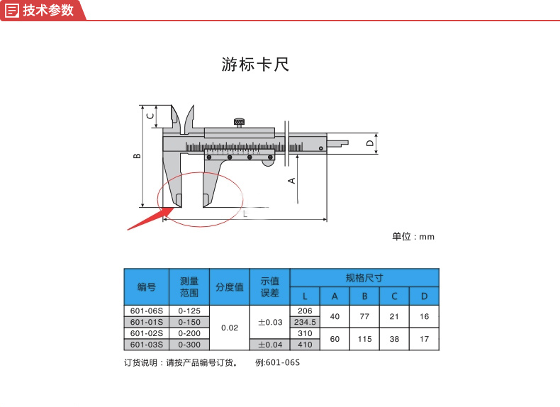 分度值(mm) 0.02 精度(mm) ±0.03