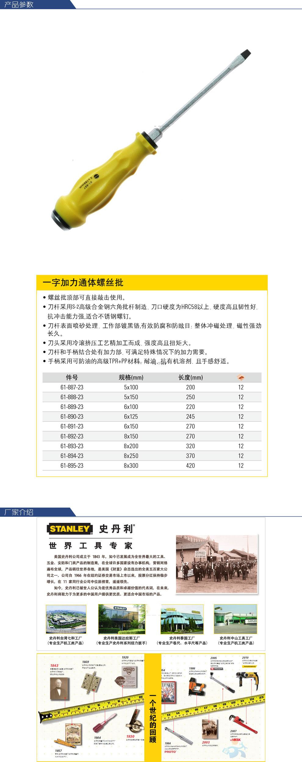 史丹利 一字形螺絲批6X100mm產品牌子: