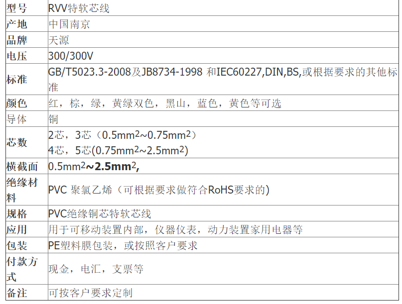 RVV銅芯多芯聚氯乙烯護套絕緣軟電纜批發銷售供應公司: